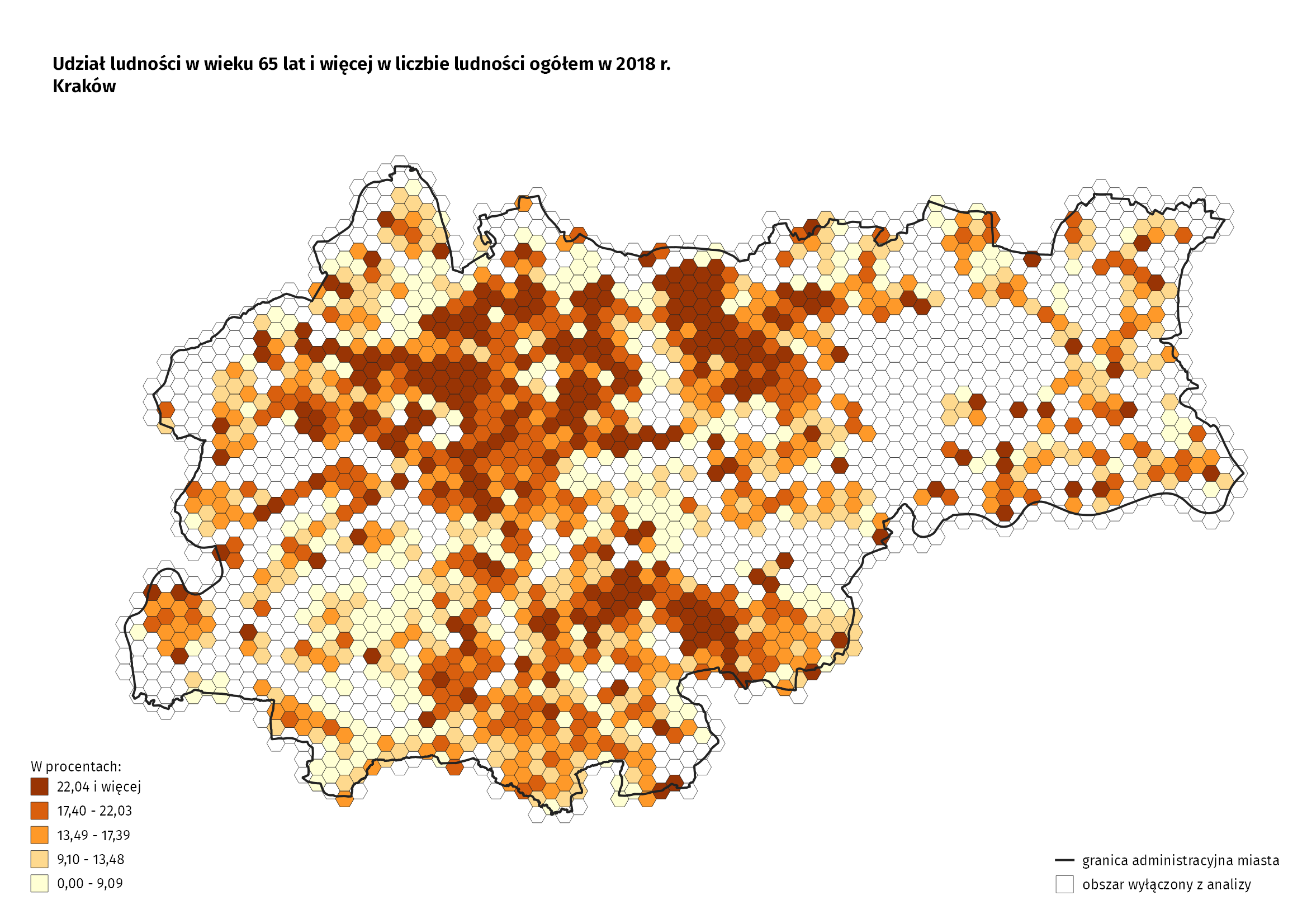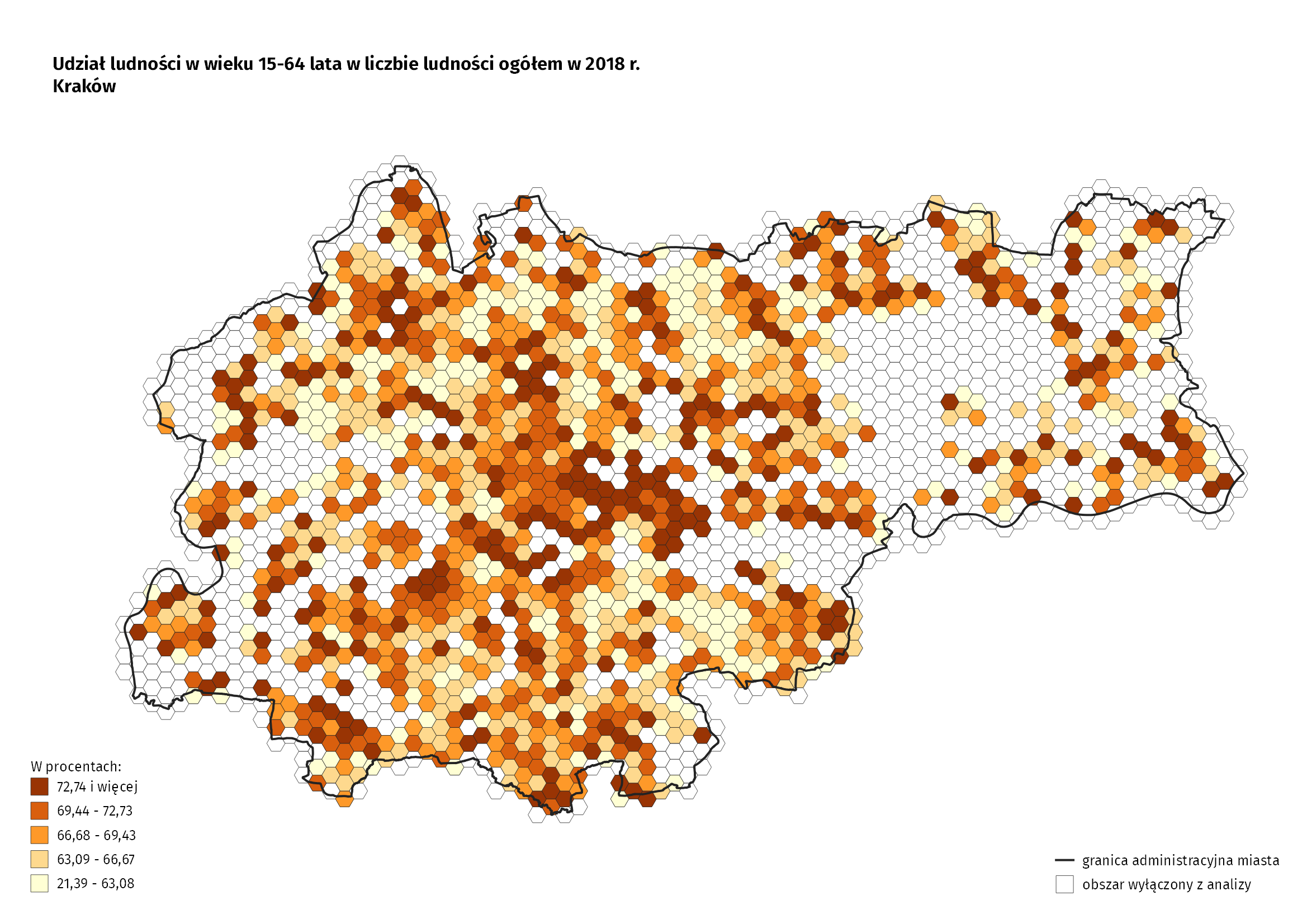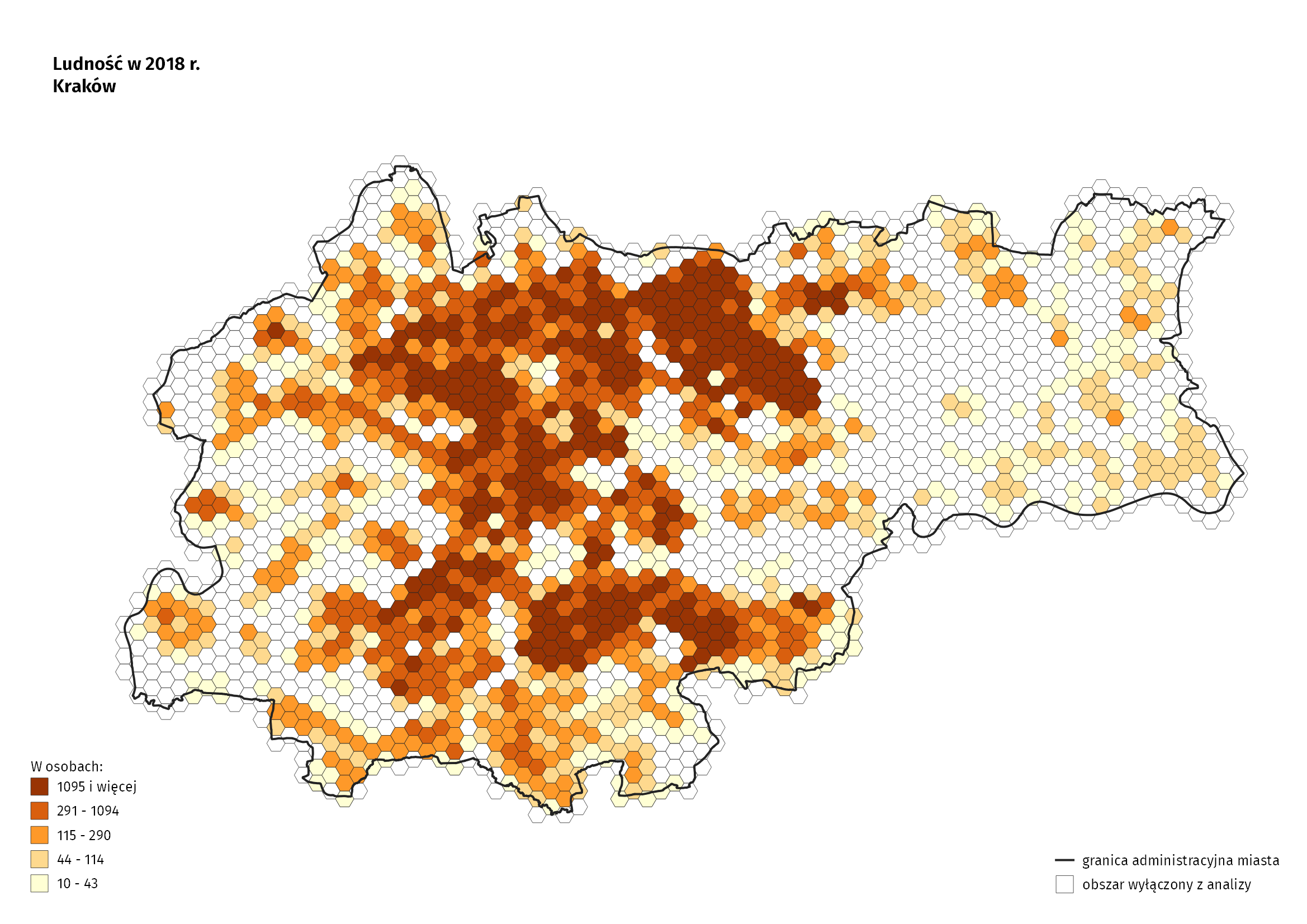 Wszystkie prezentowane w opracowaniu dane dotyczą roku 2018. Dane przestrzenne zostały przedstawione na siatce heksagonalnej o boku 250 m. Ze względu na konieczność zachowania tajemnicy statystycznej z badania dotyczącego sytuacji demograficznej wyłączono jednostki (heksagony) o liczbie ludności mniejszej niż 10 osób.