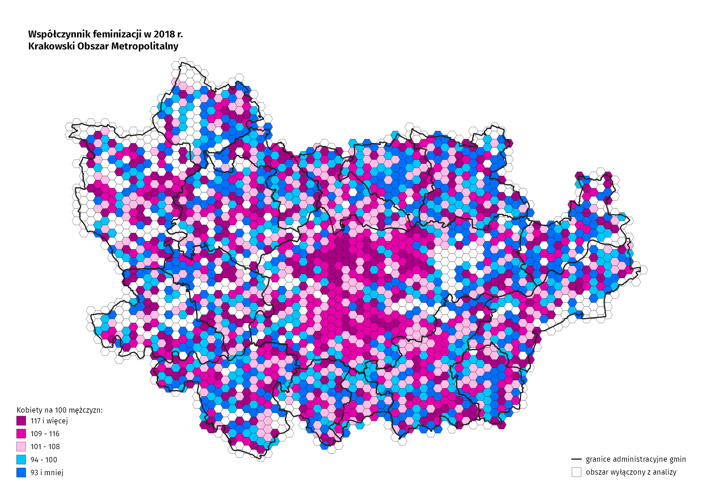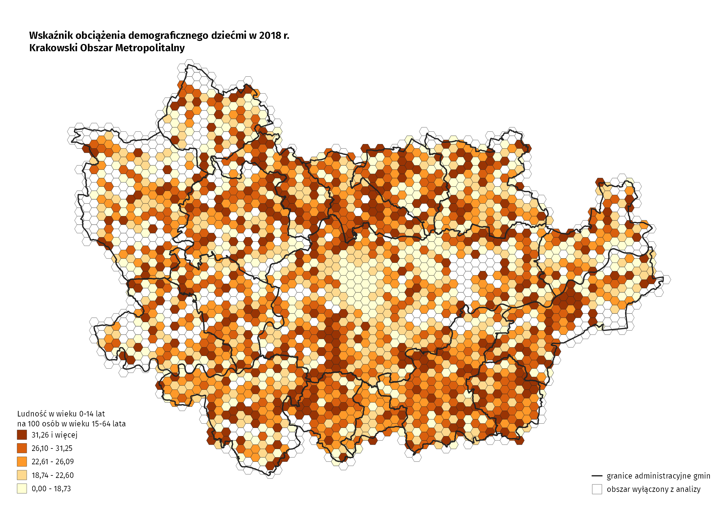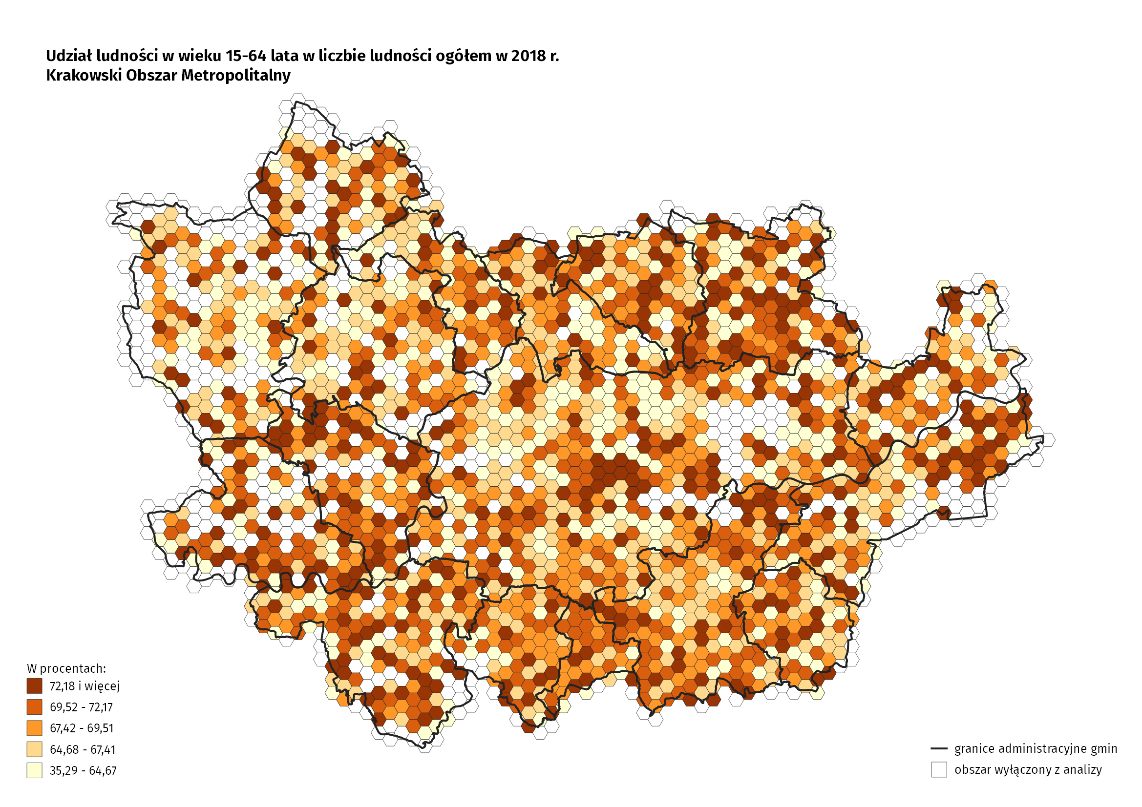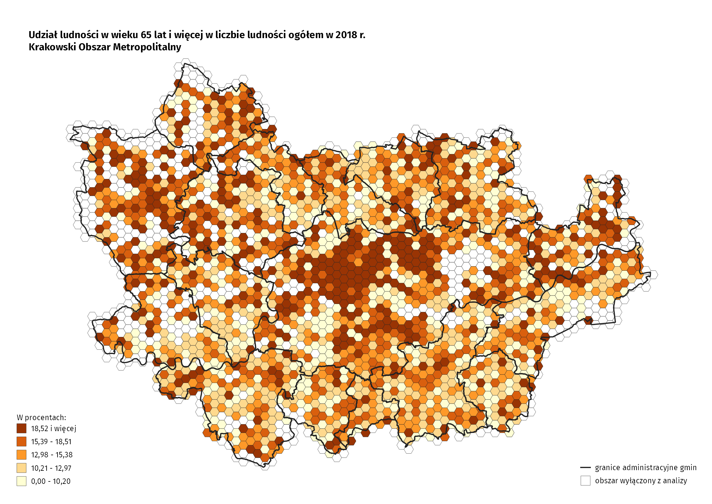 Wszystkie prezentowane w opracowaniu dane dotyczą roku 2018. Dane przestrzenne zostały przedstawione na siatce heksagonalnej o boku 500 m. Ze względu na konieczność zachowania tajemnicy statystycznej z badania dotyczącego sytuacji demograficznej wyłączono jednostki (heksagony) o liczbie ludności mniejszej niż 10 osób.
