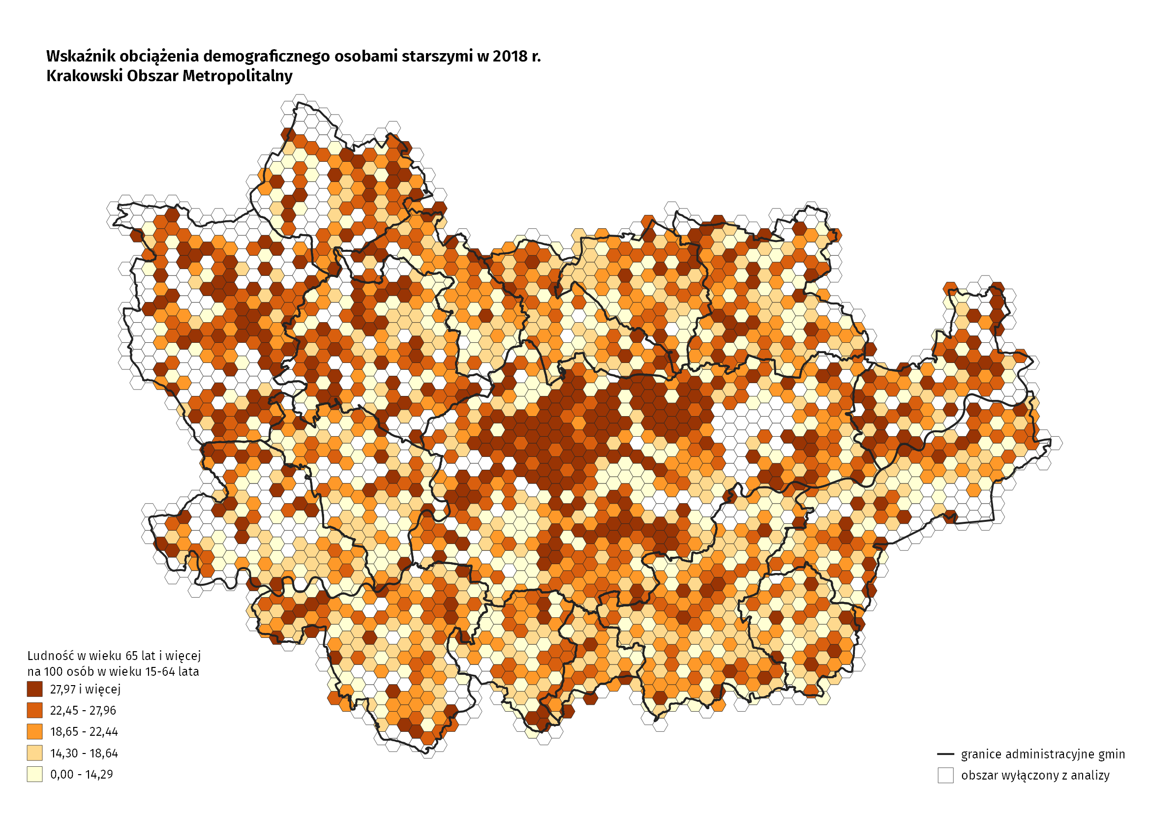 Poniżej, na podstawie opracowania przygotowanego przez Centrum Badań i Edukacji Statystycznej Głównego Urzędu Statystycznego, przedstawiono sytuację demograficzną Krakowskiego Obszaru Metropolitalnego (Kraków i 17 gmin wokół Krakowa), w aspekcie starzenia się ludności.