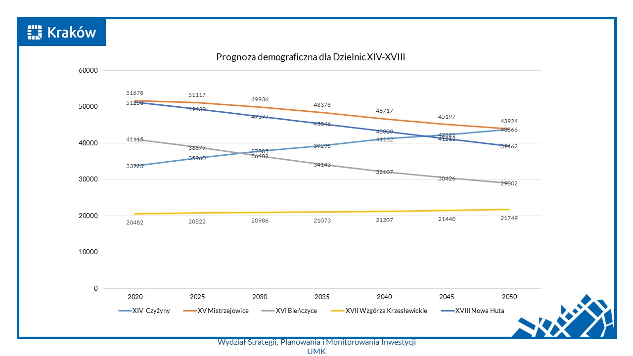 Więcej informacji o prognozie demograficznej dla Krakowa do roku 2050 znajdą Państwo tutaj